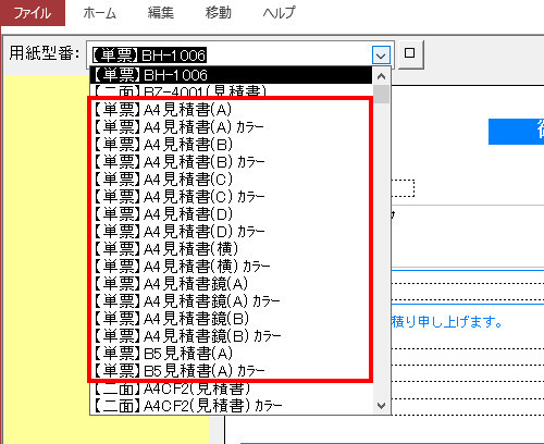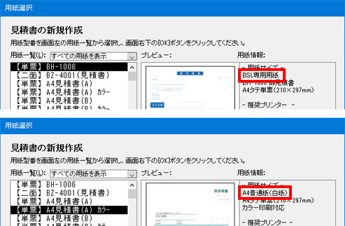 | ※見積書の場合、赤い囲み内がA4・B5普通紙で印刷できる用紙型番です。 |