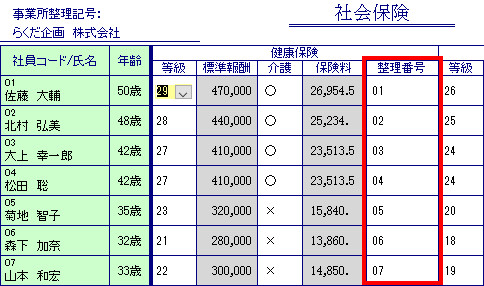 | ※ | 上記の設定がされているのに、取り込み後[健保証番号]順にならない場合は、番号の桁数が揃っていない可能性があります。"01"・"02"・・・のように、桁数を揃えて設定してください。 |