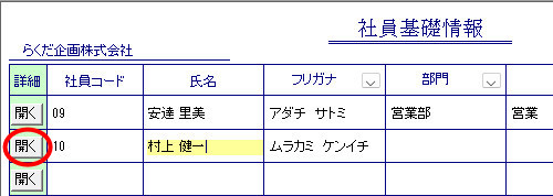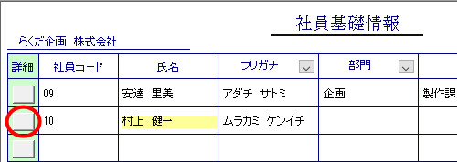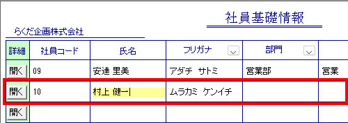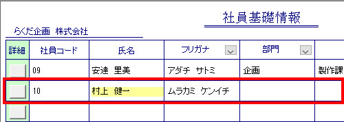 | (1 | -2)「社員基礎情報」画面が表示されますので、最下部の新規行に、社員コード・氏名等を入力します。 |