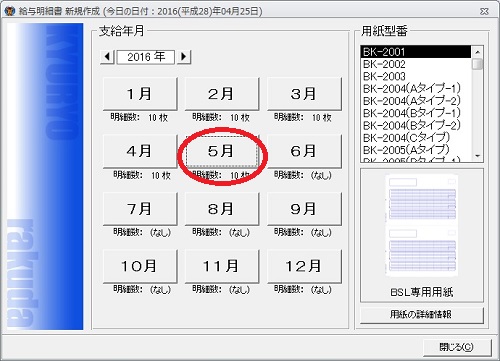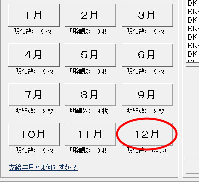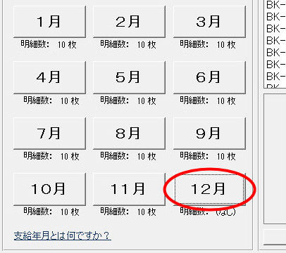 | (2 | -2)「給与明細書新規作成」画面で、新たに作成する月のボタンをクリックします。 |