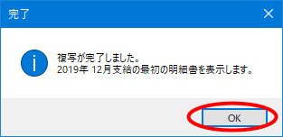 | (2 | -3)「〜直近の給与明細書を複写しますか?」のメッセージが表示されますので、[はい]ボタンをクリックします。 |