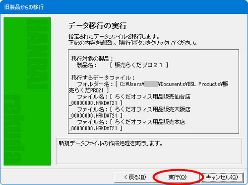 | (3- | 6)「データ移行の実行」画面で、[実行]ボタンをクリックします。 |