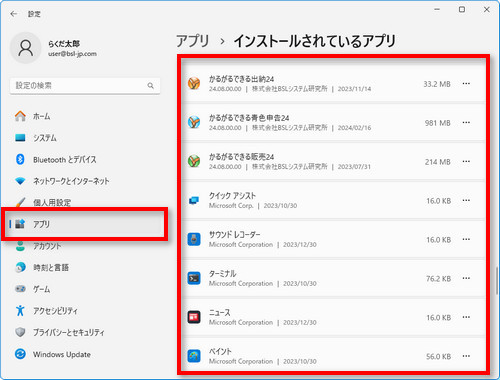 (3) [アプリ]をクリックし、表示されているアプリの一覧から、削除する製品名を探します。