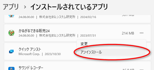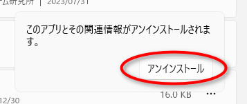 (4) 製品名の右にある[...]をクリックし、[アンインストール]をクリックします。