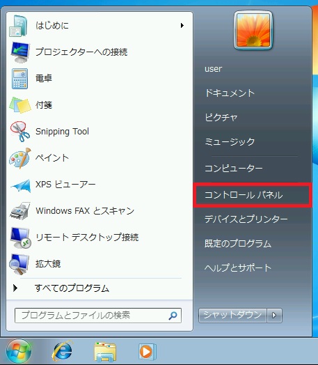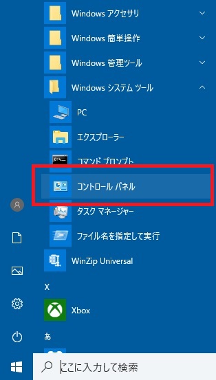 ※コントロールパネルは、Windowsの[スタート]ボタンをクリックして検索欄が表示される場合に、検索欄に「コントロールパネル」と入力することでも表示できます。