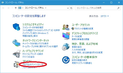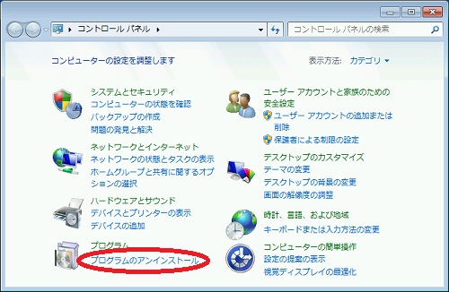 (1 -3)「コントロールパネル」画面の中から[プログラムのアンインストール]をクリックします。