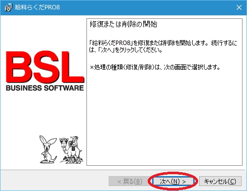 (3) 「修復または削除の開始」画面が表示されますので、[次へ]ボタンをクリックします。