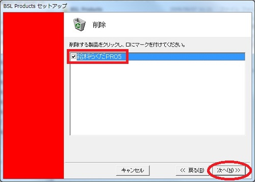 (3) 「削除」画面で、削除可能な製品の一覧が表示されますので、削除したい旧バージョンの製品名をクリックして、□にチェックを付けます。