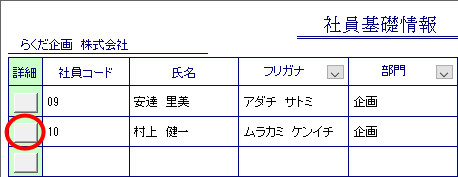 | (1- | 2)「社員基礎情報」画面で、設定を行う社員の[詳細]ボタンをクリックします。 |
