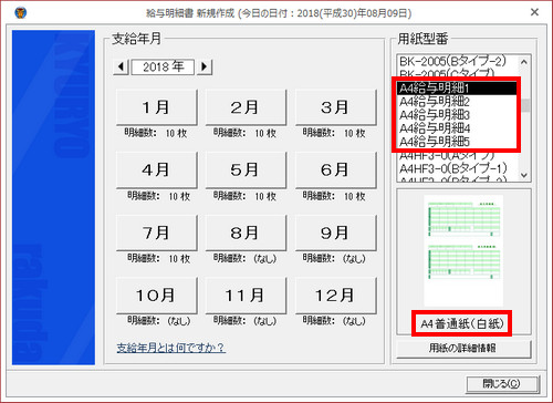 | ※「かるがるできる給料」で使用できる用紙型番は「BK-2001」「A4給与明細」のみです。 |