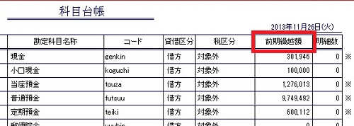 | (2) | 「科目台帳」画面が表示されますので、「前期繰越額」欄に繰越額を登録(または変更)します。 |
