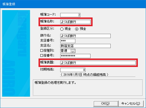 | ※必要に応じて[帳簿表題]欄も変更してください。 |