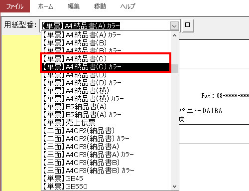| ※伝票全体の文字サイズを大きくする場合は、「【単票】A4見積書(C)」「【単票】A4納品書(C)」等、最後に(C)とつく用紙型番をご利用ください。 |