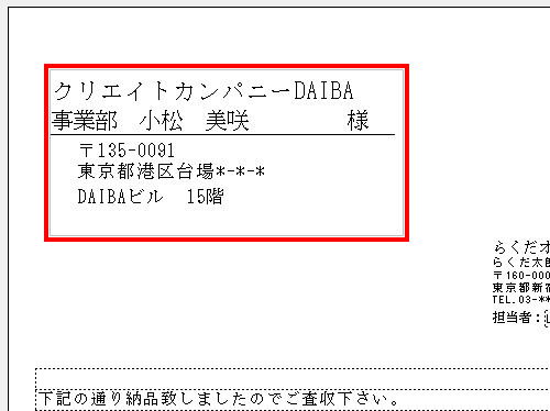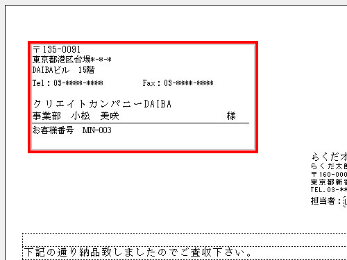 | (3) | [閉じる]ボタンをクリックし、得意先の宛名部分の文字サイズが大きくなったことをご確認ください。 |