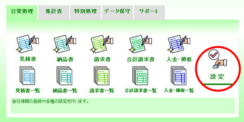 | (1) | メインメニューの[設定]アイコンをクリックします。 |