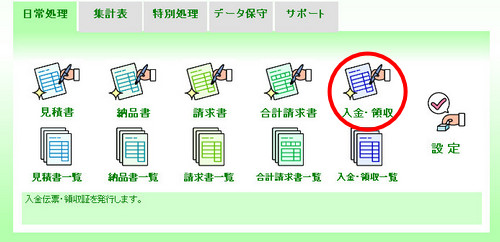 | (1) | メインメニューの[入金・領収](または[領収証])アイコンをクリックします。 |