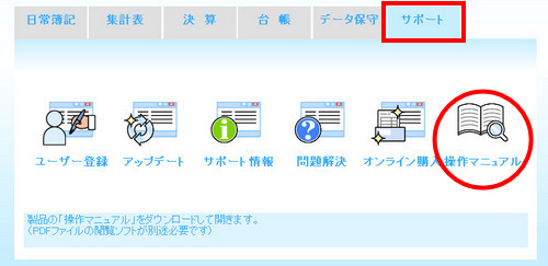 | マニュアルのPDFファイルは、メインメニュー[サポート]タブ→[操作マニュアル]アイコンからご入手頂くこともできます。 |