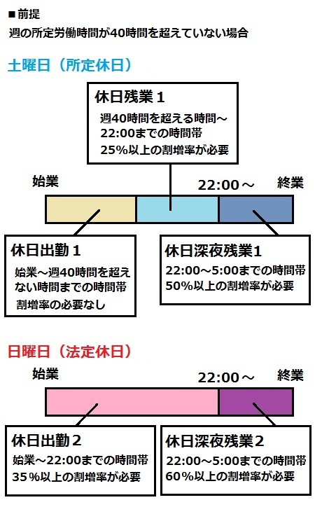 | 以下の事例はすべて、日曜日を法定休日、土曜日を所定休日としています。 |