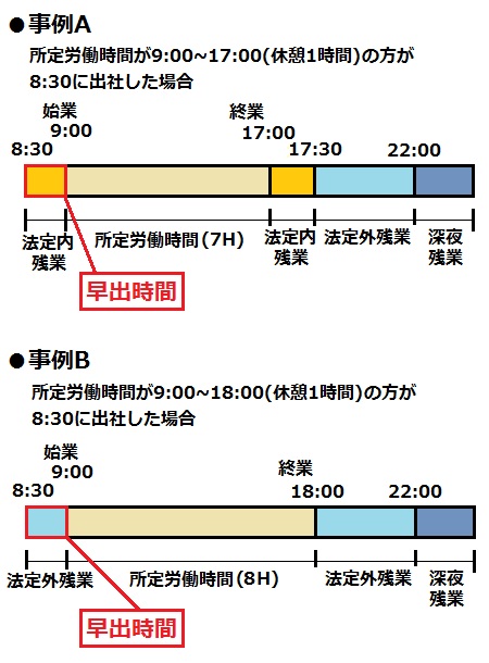 | 早出時間とは始業開始時間前の労働時間のことです。 |