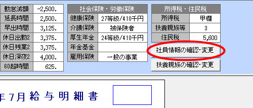 | 早出手当・・早出時間の割増賃金が自動計算される支給項目です。 |