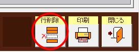 | (2) | 「帳簿設定」画面で、削除したい帳簿の行内をクリックしてカーソルを置いた状態で、画面右下の[行削除]ボタンをクリックします。 |