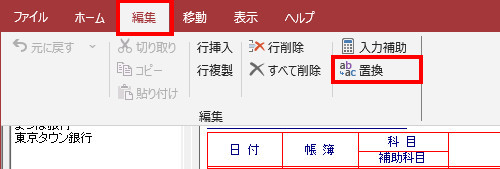 | ※置換対象に振替の明細が含まれている場合、振替先の明細にも置換処理が行われます。この作業を行うと元に戻すことができません。念のため作業前にバックアップを取ることをお勧めします。 |