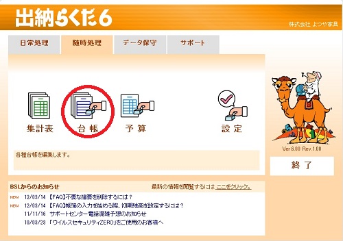 | ■「出納らくだ7」シリーズ以降、「かるがるできる出納5」以降の場合 |