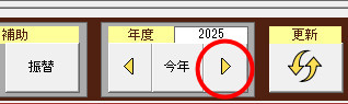 帳簿画面の下部にある年度の右向き三角ボタンをクリックすることで、帳簿の年度を切り替えることができます。 |