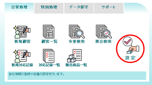 | (1) | メインメニューの[設定]アイコンをクリックします。 |