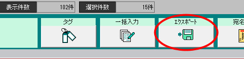 | なお、特定の顧客のデータのみを出力したい場合は、「顧客一覧」等の画面で[顧選]欄にチェックを付けた状態で、画面下部にある[エクスポート]ボタンから、出力を実行してください。 |