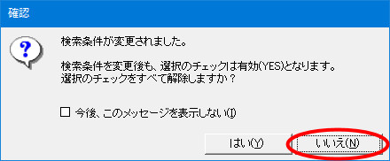 | (9) | [検索実行]ボタンをクリックし、(6)と同じ確認メッセージが表示された場合は、[いいえ]ボタンをクリックします。 |