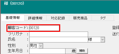 | (4) | メインメニューの[新規顧客]アイコンをクリックし、新規顧客登録画面の[顧客コード]欄に、設定した数値が反映されることをご確認ください。 |