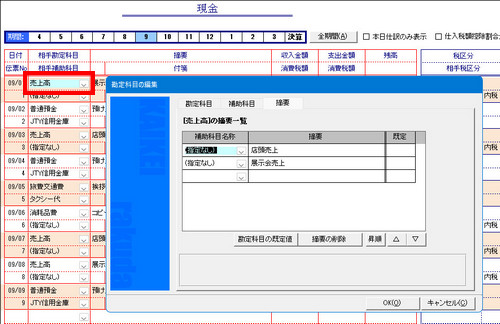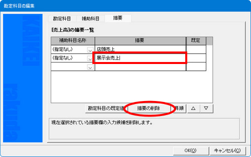 | (4) | 摘要を削除する場合は、削除したい摘要の行内をクリックし、[摘要の削除]ボタンをクリックします。 |