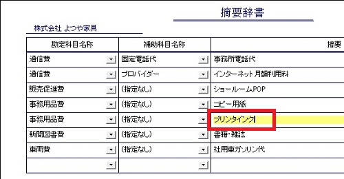| (2) | 「摘要辞書」画面が表示されます。摘要を編集する場合には該当の[摘要]欄を直接編集します。 |