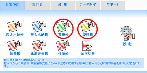 | (1) | メインメニューの[買掛帳]または[売掛帳]アイコンをクリックします。 |