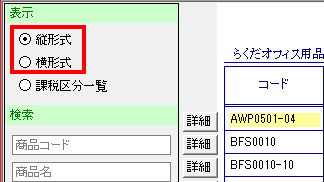 | (2- | 3)画面左上の「表示」内から、[縦形式][横形式]のいずれかを選択して、[売上単価A]から[売上単価E]までの各単価を入力していきます。 |