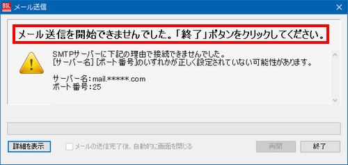 | メール送信時に画面に「メール送信を開始できませんでした。」と表示されている場合はどうすればよいですか? |