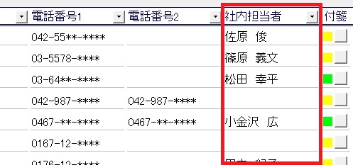 | ※任意の列を「社内担当者」に変更すると確認できます。 |