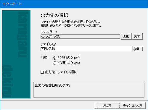 | ※[宛名印刷]機能でのファイル出力はできません。 |