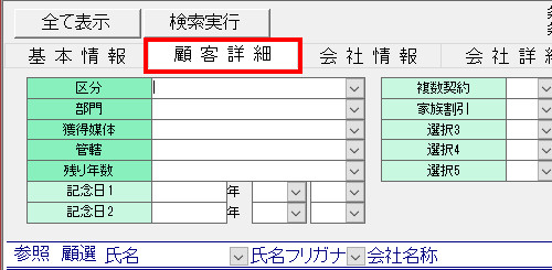 | (2) | 検索領域の中から、[顧客詳細]タブをクリックします。 |
