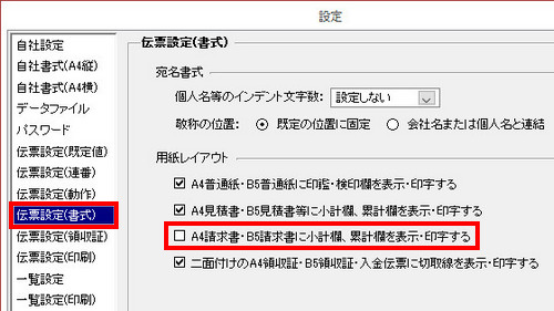 | A4・B5請求書にある「小計」「累計」欄を表示・印刷しないようにするには? |