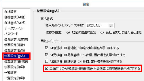 | 二面付けのA4・B5領収証・入金伝票に切取線を表示・印刷するには? |