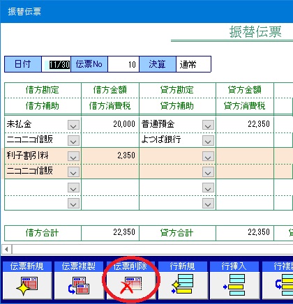 | (1) | 仕訳帳等の帳簿を開き、削除したい明細が表示された状態にします。 |