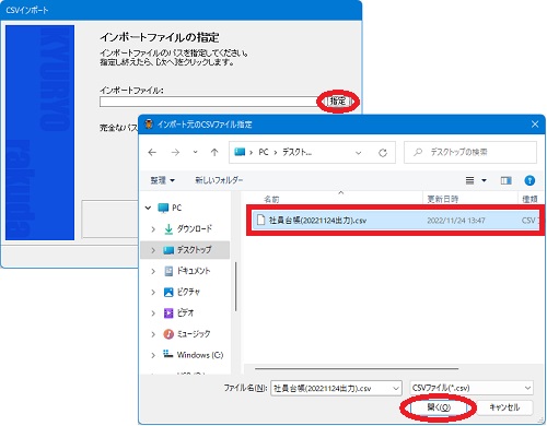 | 外部ファイルから社員台帳にインポート(読込)するには? |