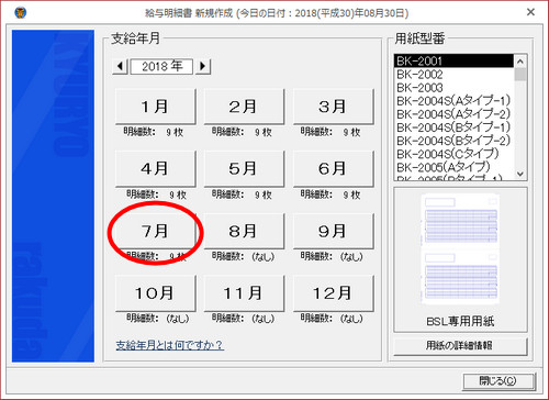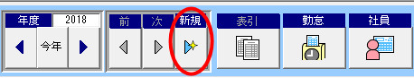 | (1) | メインメニューの[新規給与](または[給与明細書])アイコンをクリックし、「給与明細書新規作成」画面から、作成したい月のボタンをクリックします。(「〜給与明細書を複写しますか?」のメッセージが表示された場合は、[いいえ]ボタンをクリックしてください) |