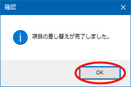| (5) | 「項目の差し替えが完了しました。」のメッセージが表示されますので、[OK]ボタンをクリックします。 |