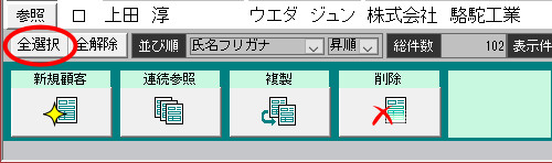 | (4) | 画面左下にある[全選択]ボタンをクリックして、絞り込まれた顧客すべてを選択します。 |