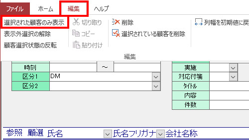 | (6) | 画面上部の[編集]メニューをクリックし、[選択された顧客のみ表示]をクリックします。 |