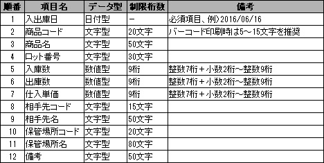 | ●ロット台帳インポート仕様(在庫らくだプロ7.5以降) |