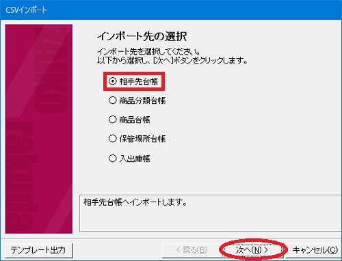 | ※「相手先台帳」へのインポートを例にしています。 |